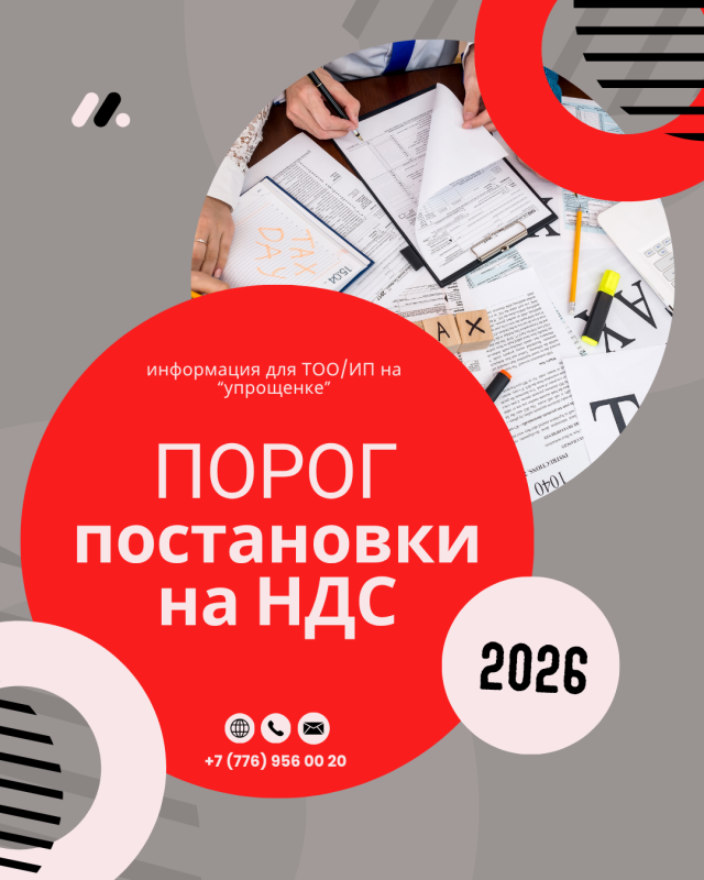 С 1 января 2026 года порог обязательной постановки на учёт по НДС будет установлен в размере 10 000 МРП согласно подп. 2 п. 4 ст. 99 нового Налогового кодекса РК.